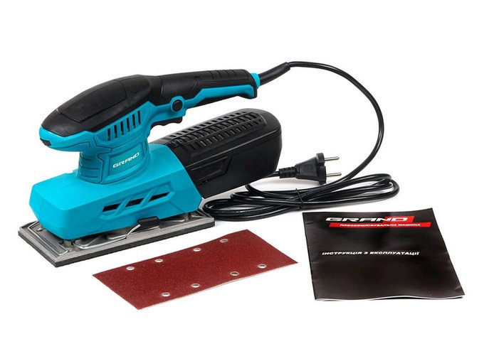 - гарна комплектація — шліфмашинка постачається з пилозбірником та інструкцією.